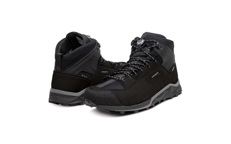 Bocanc de vanatoare si drumeție, ideali pentru sezonul de vară, Crispi Attiva Mid BLACK- piele nubuc, talpa Vibram, ultra usor