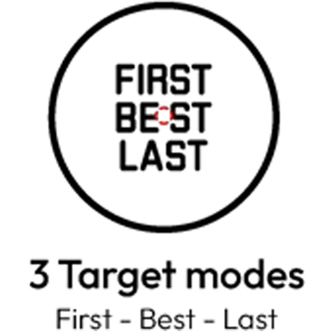 Telemetrul realizează măsurători laser rapide și precise până la 3.400 m și include trei moduri de selecție a țintei — First, Best și Last — pentru performanță optimă în orice condiții, inclusiv în zone cu vegetație deasă sau obstacole.