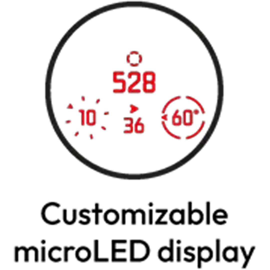 Rangermaster CRF MAX introduce un nou afișaj Active Matrix microLED cu o luminozitate de top în segment, proiectat pentru o vizibilitate excelentă în aproape orice condiție de iluminare. Acesta poate fi personalizat din aplicație, pentru a afișa doar datele relevante în funcție de scenariul de utilizare: valori balistice, distanță, compensare și multe alte opțiuni. Ordinea elementelor afișate și modul de prezentare pot fi ajustate pentru a facilita o decizie mai rapidă, fără aglomerarea câmpului vizual. Lumina puternică, umbrele sau schimbările bruște de iluminare nu afectează lizibilitatea datelor.