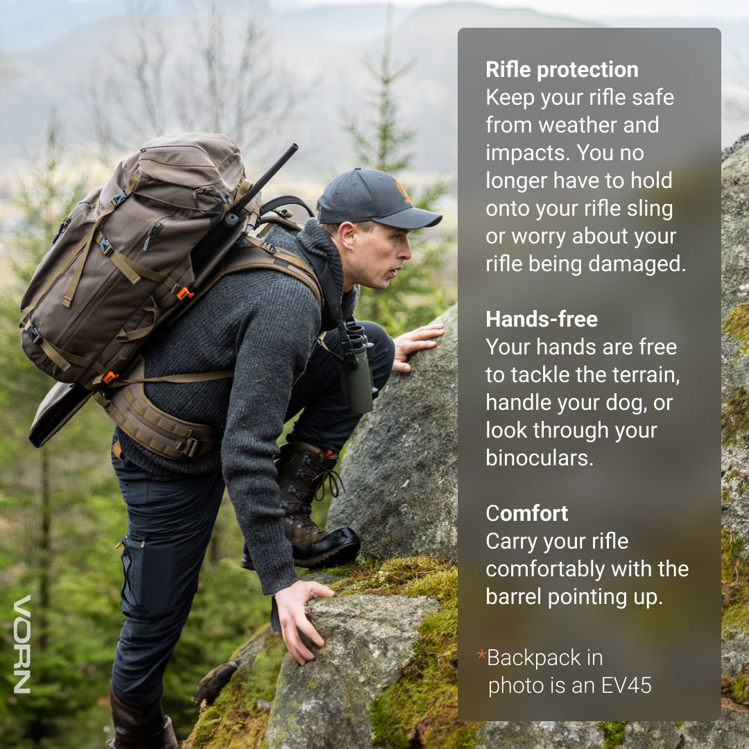 Rucsacii de vânătoare de la Vorn au devenit favoriți printre vânătorii din întreaga lume. Cu arma ta de foc bine protejată în rucsac, te poți concentra pe vânătoare. Sistemul de eliberare rapidă a puștii vă oferă acces rapid și fiabil la arma dvs. de foc atunci când sunteți gata de foc.